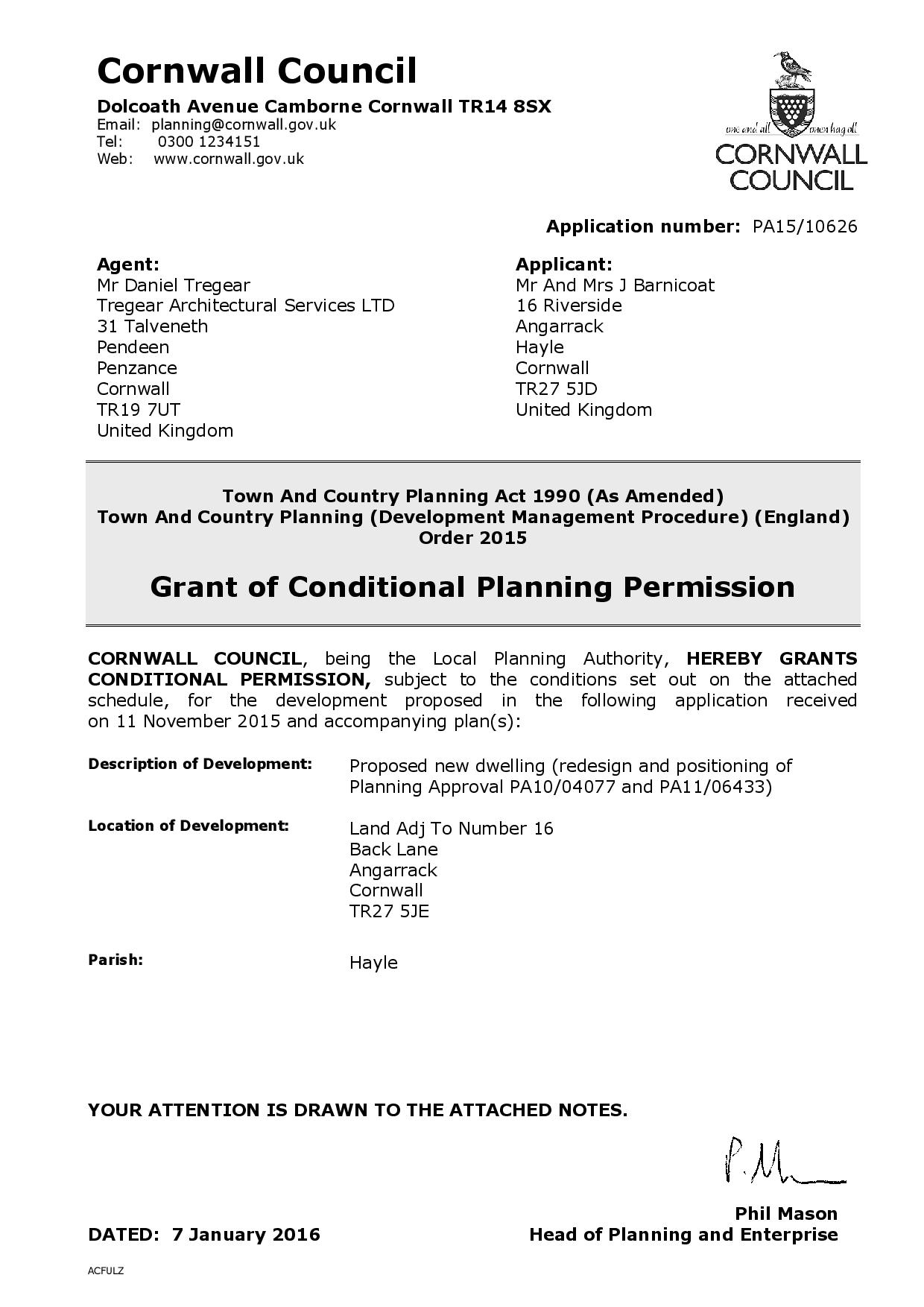 Proposed new dwelling (redesign and positioning of Planning Approval PA10/04077 and PA11/06433) - Land Adj To Number 16 Back Lane Angarrack Cornwall TR27 5JE