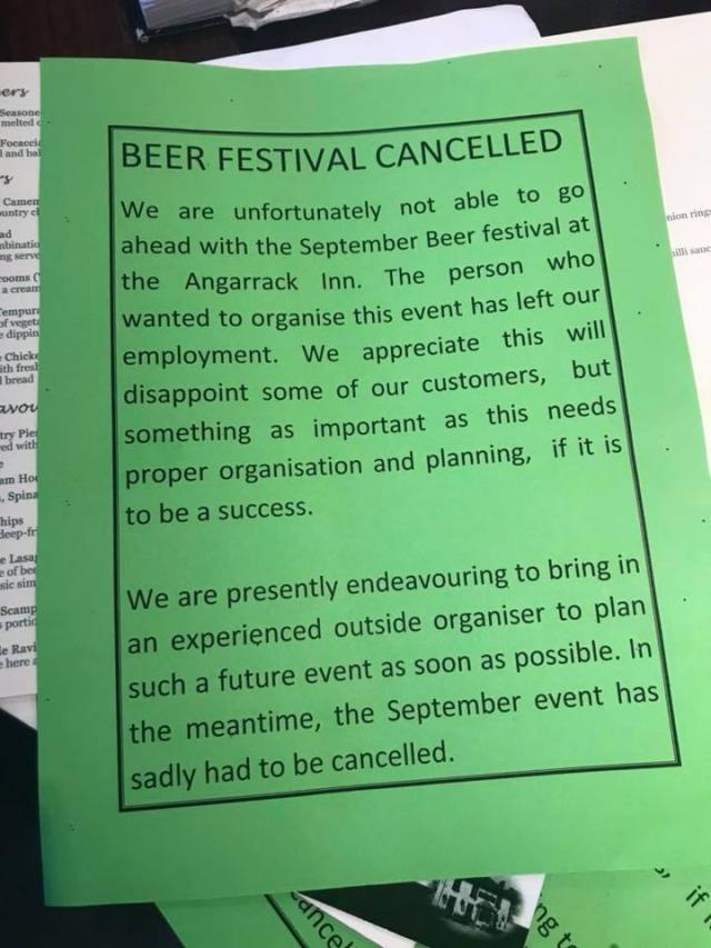 BEER FESTIVAL CANCELLED We are unfortunately not able to go
