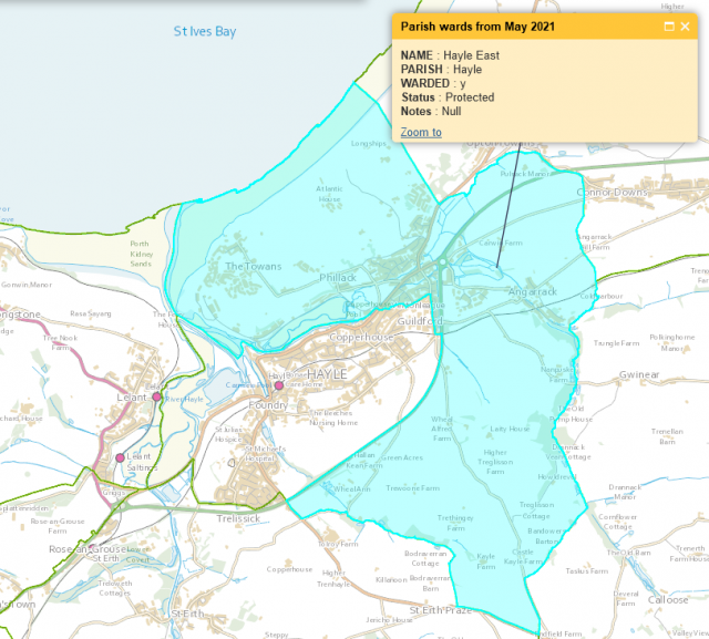 Note: A councillor can stand and represent any ward in the Hayle Area, not necessarily where they live or work. The Council elected in May will serve until the first week of May 2025 (a 4 year term of office).