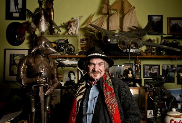 The globetrotting Londoner moved to Cornwall in 1983 to escape the rat race and has a workspace which is a treasure trove littered with armour and weapons, complete with a bust of Schwarzenegger and a life-size model of Russell Crowe.