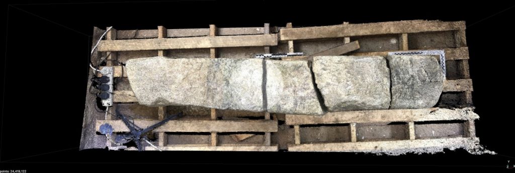 On Wednesday this week, Tom turned up armed with equipment to begin the very important task of carrying out a 3D scan of the stone. He used two different methods of recording the data: close-range laser scanning and photogrammetry.