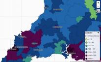 Anywhere with between zero and two cases shows white in order to "protect the privacy of individuals and prevent disclosure", the accompanying information states.