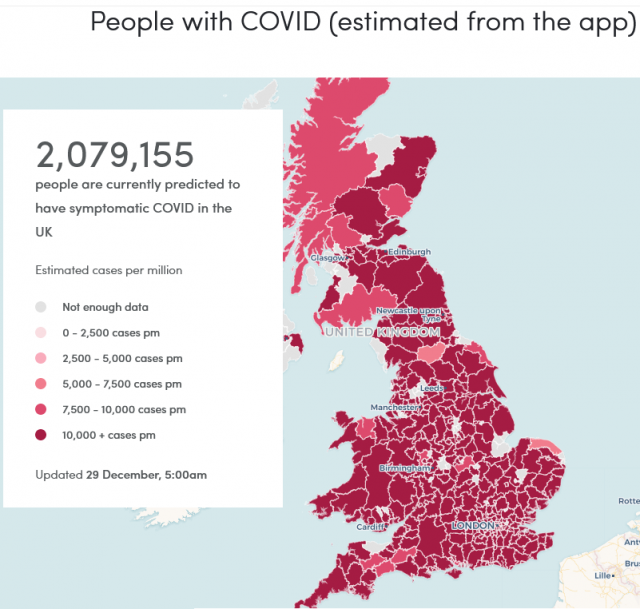 211229 | Two Million current cases reached | 2,079,155 people are currently predicted to have symptomatic COVID in the UK