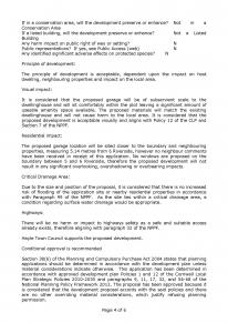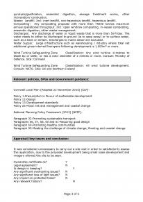 waste incineration, other incineration, landfill gas generation plant, Page 2 of 6 pyrolysis/gasification, anaerobic digestion, sewage treatment works, other incineration/ combustion. Waste: Landfill. Incl: inert landfill, non-hazardous landfill, hazardous landfill. Composting: Any composting proposal with more than 75000 tonnes maximum annual operational throughput. Incl: open windrow composting, in-vessel composting, anaerobic digestion, other waste management. Discharges: Any discharge of water or liquid waste that is more than 5m³/day. The water needs to either be discharged to ground (ie to seep away) or to surface water, such as a beck or stream. Discharges to mains sewer are excluded. Water Supply: Large infrastructure such as warehousing / industry where total net additional gross internal floorspace following development is 1,000m² or more. Wind Turbine Safeguarding Zone Classification: Any wind turbine 11metres to blade tip or taller, or has a rotor diameter of 2 metres or more. Consult: Ministry of Defence. Site: Cornwall Wind Turbine Safeguarding Zone Classification: All wind turbine development. Consult: NATS. Site: UK and Northern Ireland Relevant policies, SPGs and Government guidance: Cornwall Local Plan (Adopted 22 November 2016) (CLP)Policy Policy Policy Policy 1-Presumption in favour of sustainable development 12-Design 13-Development standards 26-Flood risk and management and coastal change National Planning Policy Framework (2012) (NPPF)Paragraph 32-Promoting sustainable transport Paragraphs 56, 57, 58, 60 and 61-Requiring good design Paragraph 69-Promoting healthy communities Paragraph 99-Meeting the challenge of climate change, flooding and coastal change Appraisal/key issues and conclusion: It was considered unnecessary to carry out a site visit in order to satisfactorily assess this application, due to the proposed development being small scale development and imagery allowed the site to be seen. Ownership certificate ok? Legal agreement? Is design in keeping? Any significant overlooking issues? Any significant loss of light issues? Any impact on protected trees? Any relevant history? Y N N N N Y N Page 3 of 6 If in a conservation area, will the development preserve or enhance? Conservation Area If a listed building, will the development preserve or enhance? Building Any harm impact on public right of way or setting? Public representations? If yes, see Public Access (web) Any identified significant adverse effects on protected species? N Not Not in a a Listed N N Principle of development: The principle of development is acceptable, dependent upon the impact on host dwelling, neighbouring properties and impact on the local area.
