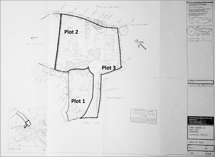 in July 1993 for the construction of two dwellings at plots 2 and 3, on land at Grist Lane.