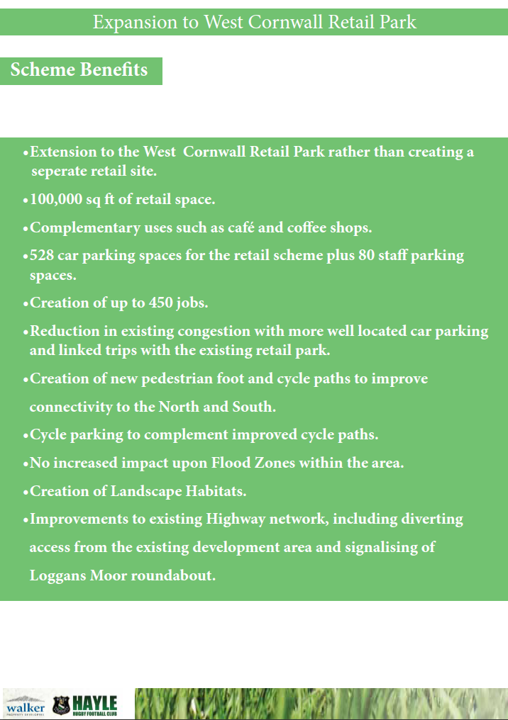 - 160620 | Walker Developments website shows start date for the Hayle Rugby Club Retail Park as MAY 2017. This will be after the