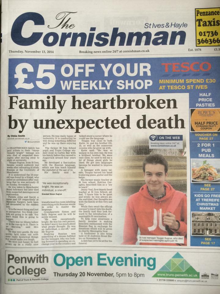 Heartbroken family pay tribute to "exceptionally bright" St Ives teen who died of suspected meningitis | The Cornishman