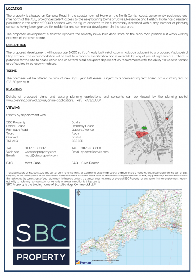filling station. The accommodation will be built to a modern specification and is available by way of pre let agreements. There is