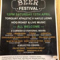 Hayle RFC is holding a Beer Festival on 13 April 2019 from 12 noon.