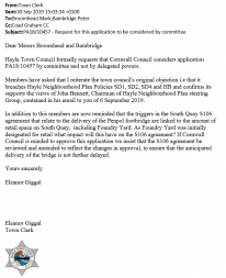 - 190930 | Members have asked that I reiterate the town council's original objection i.e that it breaches Hayle Neighbourhood Plan